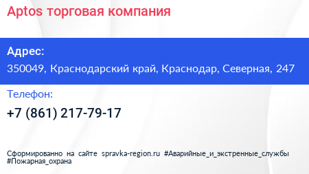 Aptos, торговая компания по адресу 350049, Краснодарский край, Краснодар, Северная, 247 в дальнейшем Организация, размещена в следующих категориях:
