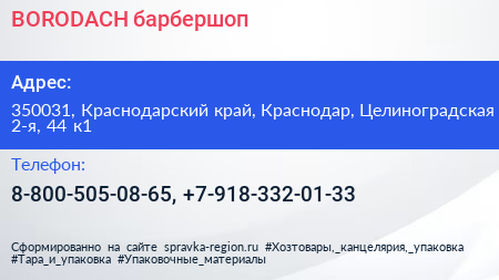 BORODACH, барбершоп по адресу 350031, Краснодарский край, Краснодар, Целиноградская 2-я, 44 к1 в дальнейшем Организация, размещена в следующих категориях: