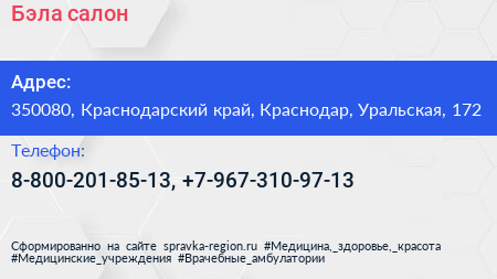 Бэла, салон по адресу 350080, Краснодарский край, Краснодар, Уральская, 172 в дальнейшем Организация, размещена в следующих категориях: