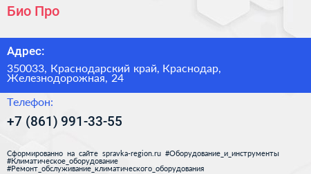 Био Про по адресу 350033, Краснодарский край, Краснодар, Железнодорожная, 24 в дальнейшем Организация, размещена в следующих категориях: