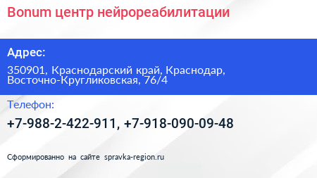 Bonum, центр нейрореабилитации по адресу 350901, Краснодарский край, Краснодар, Восточно-Кругликовская, 76/4 в дальнейшем Организация, размещена в следующих категориях: