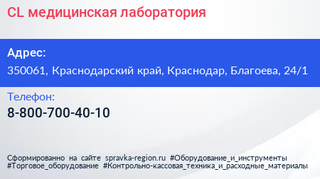 CL, медицинская лаборатория по адресу 350061, Краснодарский край, Краснодар, Благоева, 24/1 в дальнейшем Организация, размещена в следующих категориях: