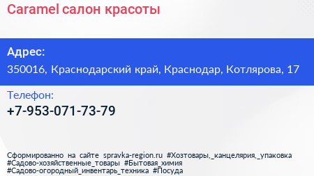 Caramel, салон красоты по адресу 350016, Краснодарский край, Краснодар, Котлярова, 17 в дальнейшем Организация, размещена в следующих категориях: