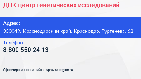 ДНК, центр генетических исследований по адресу 350049, Краснодарский край, Краснодар, Тургенева, 62 в дальнейшем Организация, размещена в следующих категориях: