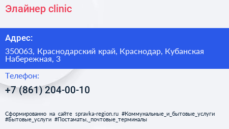 Элайнер clinic по адресу 350063, Краснодарский край, Краснодар, Кубанская Набережная, 3 в дальнейшем Организация, размещена в следующих категориях: