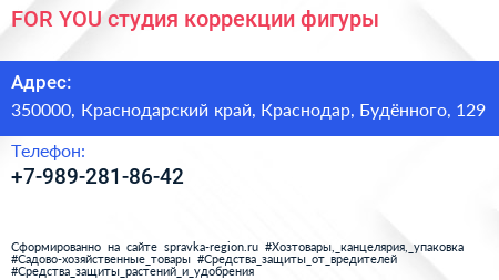 FOR YOU, студия коррекции фигуры по адресу 350000, Краснодарский край, Краснодар, Будённого, 129 в дальнейшем Организация, размещена в следующих категориях: