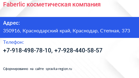 Faberlic, косметическая компания по адресу 350916, Краснодарский край, Краснодар, Степная, 373 в дальнейшем Организация, размещена в следующих категориях: