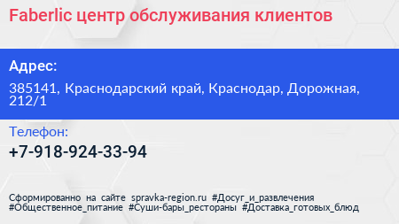 Faberlic, центр обслуживания клиентов по адресу 385141, Краснодарский край, Краснодар, Дорожная, 212/1 в дальнейшем Организация, размещена в следующих категориях: