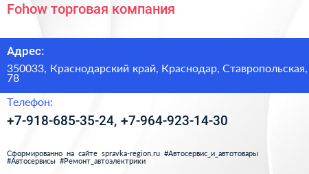 Fohow, торговая компания по адресу 350033, Краснодарский край, Краснодар, Ставропольская, 78 в дальнейшем Организация, размещена в следующих категориях: