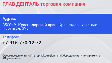 ГЛАВ ДЕНТАЛЬ, торговая компания по адресу 350049, Краснодарский край, Краснодар, Красных Партизан, 393 в дальнейшем Организация, размещена в следующих категориях: