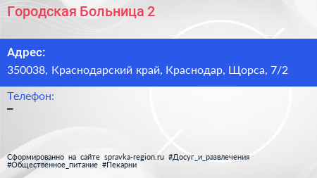 Городская Больница №2 по адресу 350038, Краснодарский край, Краснодар, Щорса, 7/2 в дальнейшем Организация, размещена в следующих категориях: