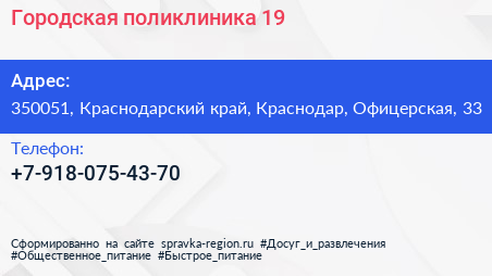 Городская поликлиника №19 по адресу 350051, Краснодарский край, Краснодар, Офицерская, 33 в дальнейшем Организация, размещена в следующих категориях: