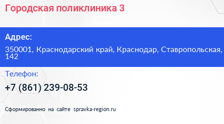 Городская поликлиника №3 по адресу 350001, Краснодарский край, Краснодар, Ставропольская, 142 в дальнейшем Организация, размещена в следующих категориях: