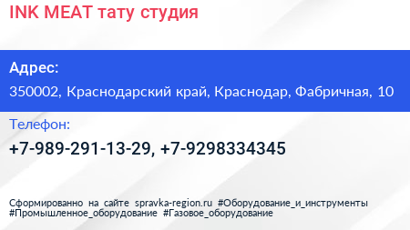 INK MEAT, тату-студия по адресу 350002, Краснодарский край, Краснодар, Фабричная, 10 в дальнейшем Организация, размещена в следующих категориях: