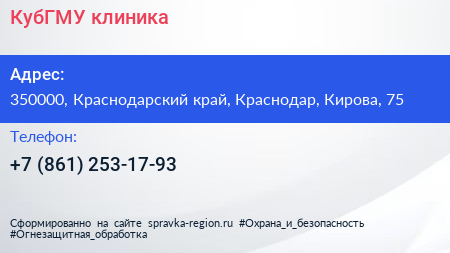КубГМУ, клиника по адресу 350000, Краснодарский край, Краснодар, Кирова, 75 в дальнейшем Организация, размещена в следующих категориях: