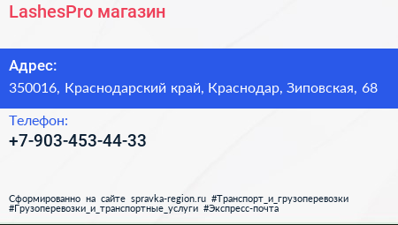 LashesPro, магазин по адресу 350016, Краснодарский край, Краснодар, Зиповская, 68 в дальнейшем Организация, размещена в следующих категориях: