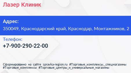Лазер Клиник по адресу 350049, Краснодарский край, Краснодар, Монтажников, 2 в дальнейшем Организация, размещена в следующих категориях: