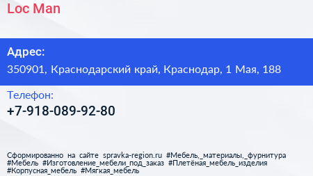 Loc. Man по адресу 350901, Краснодарский край, Краснодар, 1 Мая, 188 в дальнейшем Организация, размещена в следующих категориях: