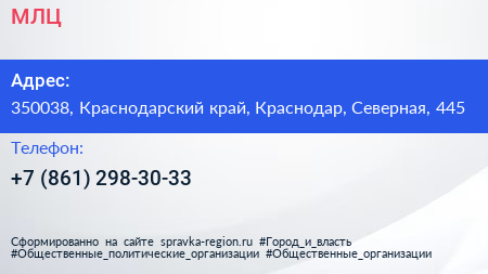 МЛЦ по адресу 350038, Краснодарский край, Краснодар, Северная, 445 в дальнейшем Организация, размещена в следующих категориях: