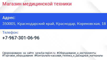 Магазин медицинской техники по адресу 350005, Краснодарский край, Краснодар, Кореновская, 18 в дальнейшем Организация, размещена в следующих категориях: