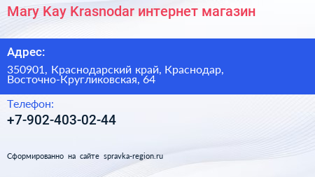 Mary Kay Krasnodar, интернет-магазин по адресу 350901, Краснодарский край, Краснодар, Восточно-Кругликовская, 64 в дальнейшем Организация, размещена в следующих категориях:
