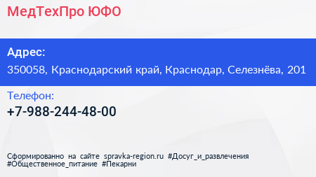 МедТехПро-ЮФО по адресу 350058, Краснодарский край, Краснодар, Селезнёва, 201 в дальнейшем Организация, размещена в следующих категориях: