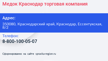 Медок Краснодар, торговая компания по адресу 350080, Краснодарский край, Краснодар, Ессентукская, 8/2 в дальнейшем Организация, размещена в следующих категориях: