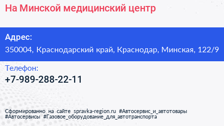 На Минской, медицинский центр по адресу 350004, Краснодарский край, Краснодар, Минская, 122/9 в дальнейшем Организация, размещена в следующих категориях: