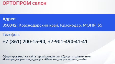 ОРТОПРОМ, салон по адресу 350042, Краснодарский край, Краснодар, МОПР, 55 в дальнейшем Организация, размещена в следующих категориях: