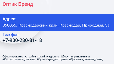 Оптик Бренд по адресу 350055, Краснодарский край, Краснодар, Природная, 3а в дальнейшем Организация, размещена в следующих категориях: