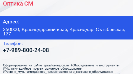 Оптика СМ по адресу 350000, Краснодарский край, Краснодар, Октябрьская, 177 в дальнейшем Организация, размещена в следующих категориях: