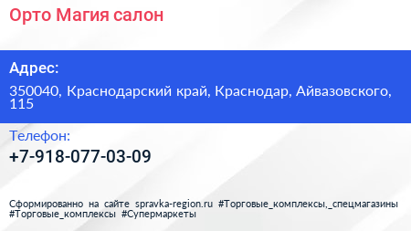 Орто Магия, салон по адресу 350040, Краснодарский край, Краснодар, Айвазовского, 115 в дальнейшем Организация, размещена в следующих категориях: