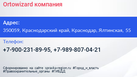 Ortowizard, компания по адресу 350059, Краснодарский край, Краснодар, Ялтинская, 55 в дальнейшем Организация, размещена в следующих категориях: