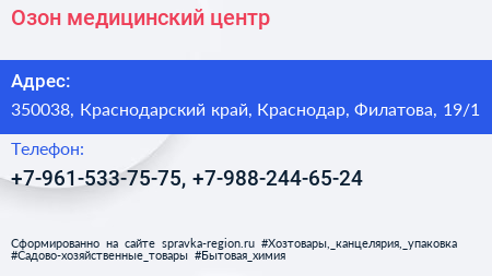 Озон, медицинский центр по адресу 350038, Краснодарский край, Краснодар, Филатова, 19/1 в дальнейшем Организация, размещена в следующих категориях: