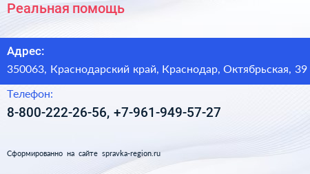 Реальная помощь по адресу 350063, Краснодарский край, Краснодар, Октябрьская, 39 в дальнейшем Организация, размещена в следующих категориях: