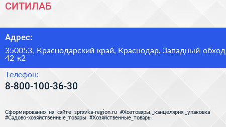СИТИЛАБ по адресу 350053, Краснодарский край, Краснодар, Западный обход, 42 к2 в дальнейшем Организация, размещена в следующих категориях: