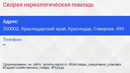Скорая наркологическая помощь по адресу 350002, Краснодарский край, Краснодар, Северная, 490 в дальнейшем Организация, размещена в следующих категориях: