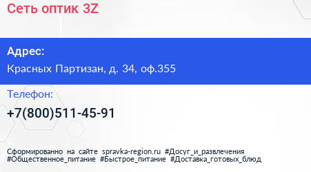 Сеть оптик 3Z по адресу Красных Партизан, д. 34, оф.355 в дальнейшем Организация, размещена в следующих категориях: