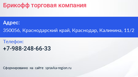 Брикофф, торговая компания по адресу 350056, Краснодарский край, Краснодар, Калинина, 11/2 в дальнейшем Организация, размещена в следующих категориях:
