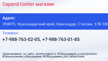 Caparol Center, магазин по адресу 350075, Краснодарский край, Краснодар, Стасова, 178-180 в дальнейшем Организация, размещена в следующих категориях: