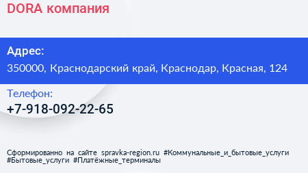 DORA, компания по адресу 350000, Краснодарский край, Краснодар, Красная, 124 в дальнейшем Организация, размещена в следующих категориях:
