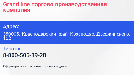 Grand line, торгово-производственная компания по адресу 350005, Краснодарский край, Краснодар, Дзержинского, 112 в дальнейшем Организация, размещена в следующих категориях: