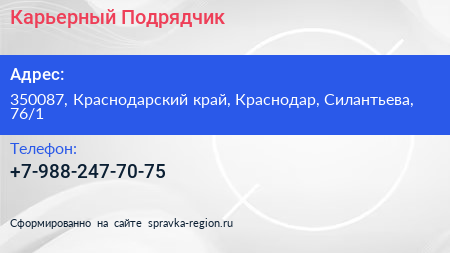 Карьерный Подрядчик по адресу 350087, Краснодарский край, Краснодар, Силантьева, 76/1 в дальнейшем Организация, размещена в следующих категориях: