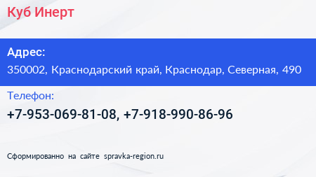 Куб Инерт по адресу 350002, Краснодарский край, Краснодар, Северная, 490 в дальнейшем Организация, размещена в следующих категориях: