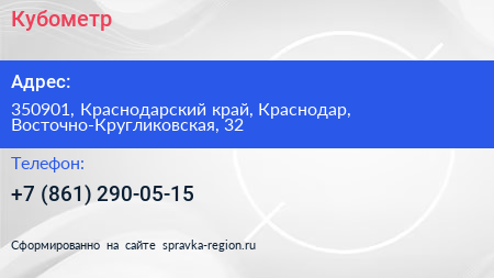 Кубометр по адресу 350901, Краснодарский край, Краснодар, Восточно-Кругликовская, 32 в дальнейшем Организация, размещена в следующих категориях: