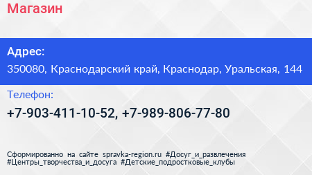 Магазин по адресу 350080, Краснодарский край, Краснодар, Уральская, 144 в дальнейшем Организация, размещена в следующих категориях: