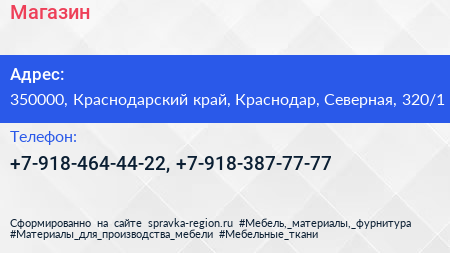 Магазин по адресу 350000, Краснодарский край, Краснодар, Северная, 320/1 в дальнейшем Организация, размещена в следующих категориях: