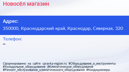 Новосёл, магазин по адресу 350000, Краснодарский край, Краснодар, Северная, 320 в дальнейшем Организация, размещена в следующих категориях: