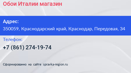 Обои Италии, магазин по адресу 350059, Краснодарский край, Краснодар, Передовая, 34 в дальнейшем Организация, размещена в следующих категориях: