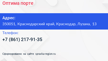 Оптима порте по адресу 350051, Краснодарский край, Краснодар, Лузана, 13 в дальнейшем Организация, размещена в следующих категориях: